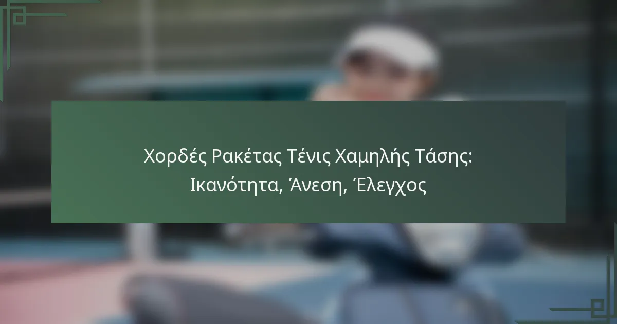 Η χαμηλή τάση στις χορδές τένις αναφέρεται στην ποσότητα δύναμης που εφαρμόζεται όταν οι χορδές εγκαθίστανται στο ρακέτα. Μια χαμηλότερη τάση σημαίνει ότι οι χορδές είναι πιο χαλαρές, επιτρέποντας μεγαλύτερη ελαστικότητα και πιο μαλακή αίσθηση κατά τη διάρκεια του παιχνιδιού. Αυτή η ρύθμιση μπορεί να επηρεάσει σημαντικά την απόδοση της ρακέτας κατά τη διάρκεια ενός αγώνα.