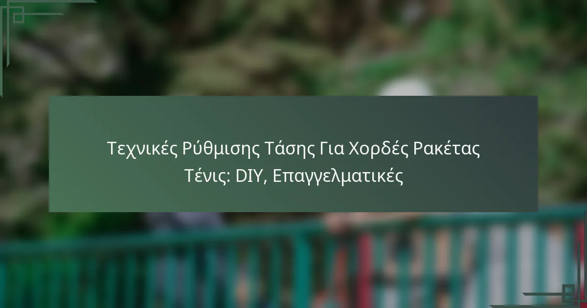 Η DIY ρύθμιση τάσης επιτρέπει στους παίκτες να προσαρμόσουν τις χορδές της ρακέτας τους στο σπίτι, ενώ οι επαγγελματικές υπηρεσίες προσφέρουν ακριβή και συνεπή αποτελέσματα. Κάθε μέθοδος έχει διακριτά πλεονεκτήματα και μειονεκτήματα που μπορούν να επηρεάσουν την απόδοση, το κόστος και την ευκολία.